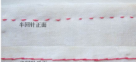 薄。自衣料反面起针,正面针迹呈一字状,反面针迹呈斜势,从下向上运针,上下需对齐。拱针;正面针